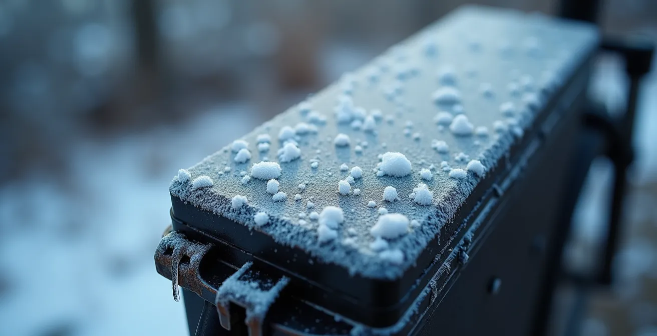 You’ve felt it. That crisp January morning when your fully-charged e-bike, which reliably gave you a 40-mile range in summer, suddenly shows the low-battery warning light after just 25. It’s a frustrating and common experience for any all-season cyclist. The standard advice you hear everywhere is simple: “bring your battery inside” or “don’t leave your bike in the cold.” While not wrong, this advice barely scratches the surface and misses the real, silent killer of e-bike batteries: irreversible chemical damage.